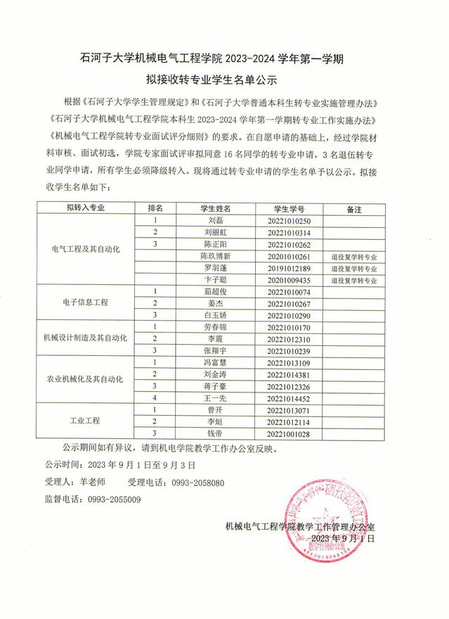 玩偶姐姐 2023-2024学年第一学期拟接收转专业学生名单公示
