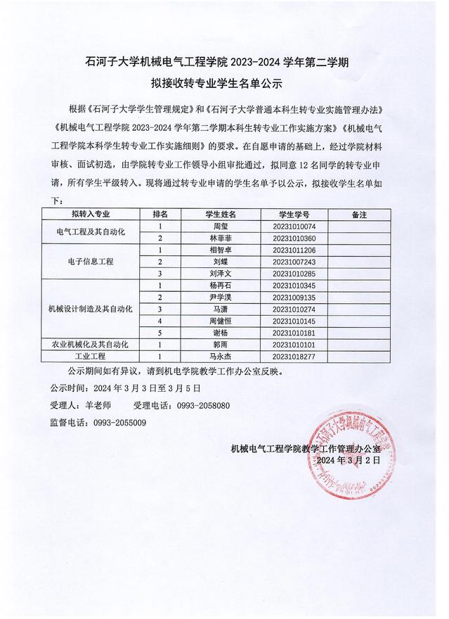 玩偶姐姐 2023-2024学年第二学期拟接收转专业学生名单公示