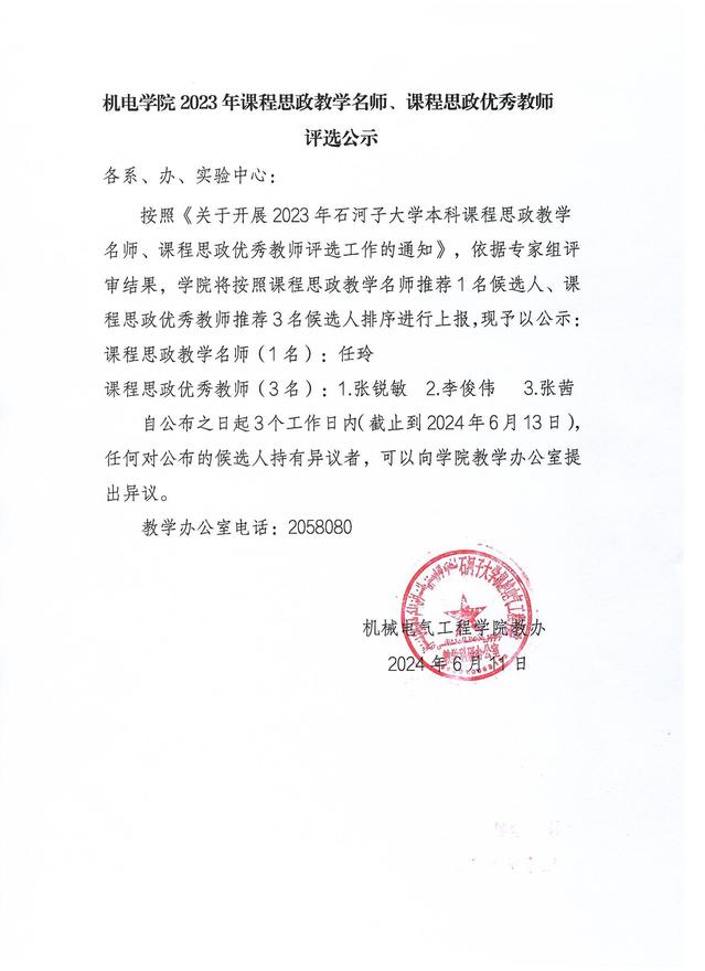 玩偶姐姐 2023年课程思政教学名师、课程思政优秀教师 评选公示