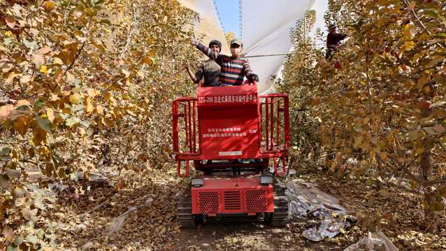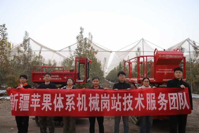 2025 年 10 月26 日至11月 10 日,玩偶姐姐 、新疆苹果产业体系果园机械化技术与装备岗李景彬教授团队赴第一师五团开展自主研制的两款自走式多功能采摘平台技术推广与现场演示活动。